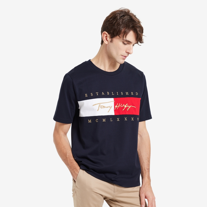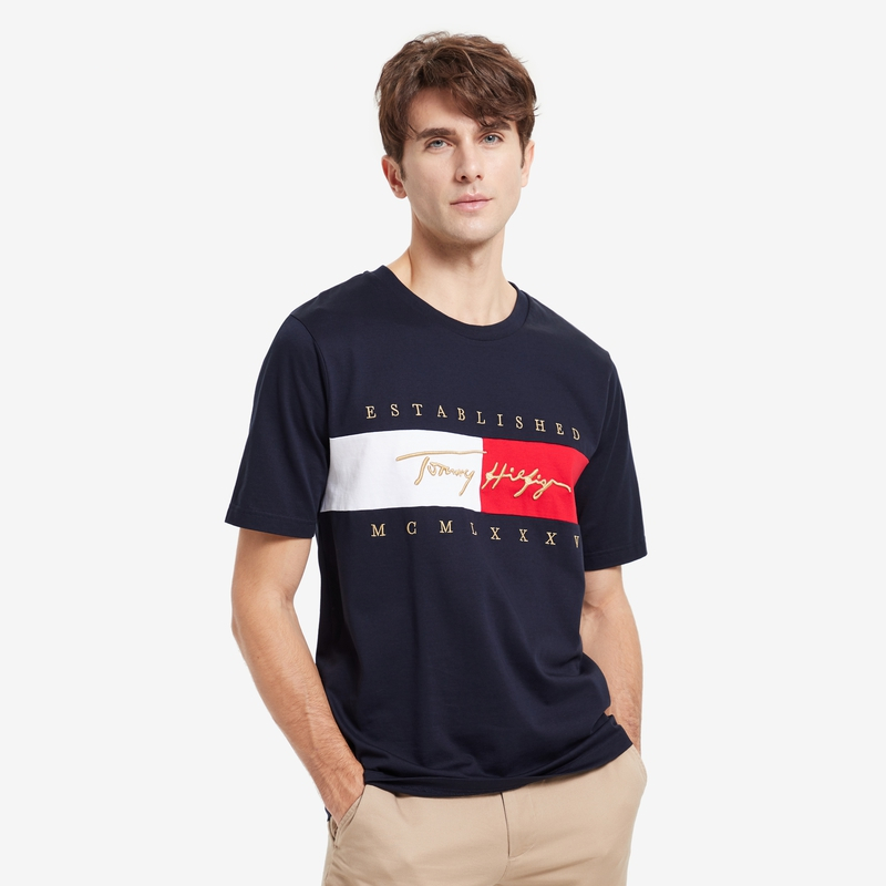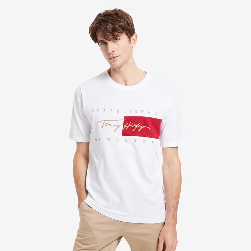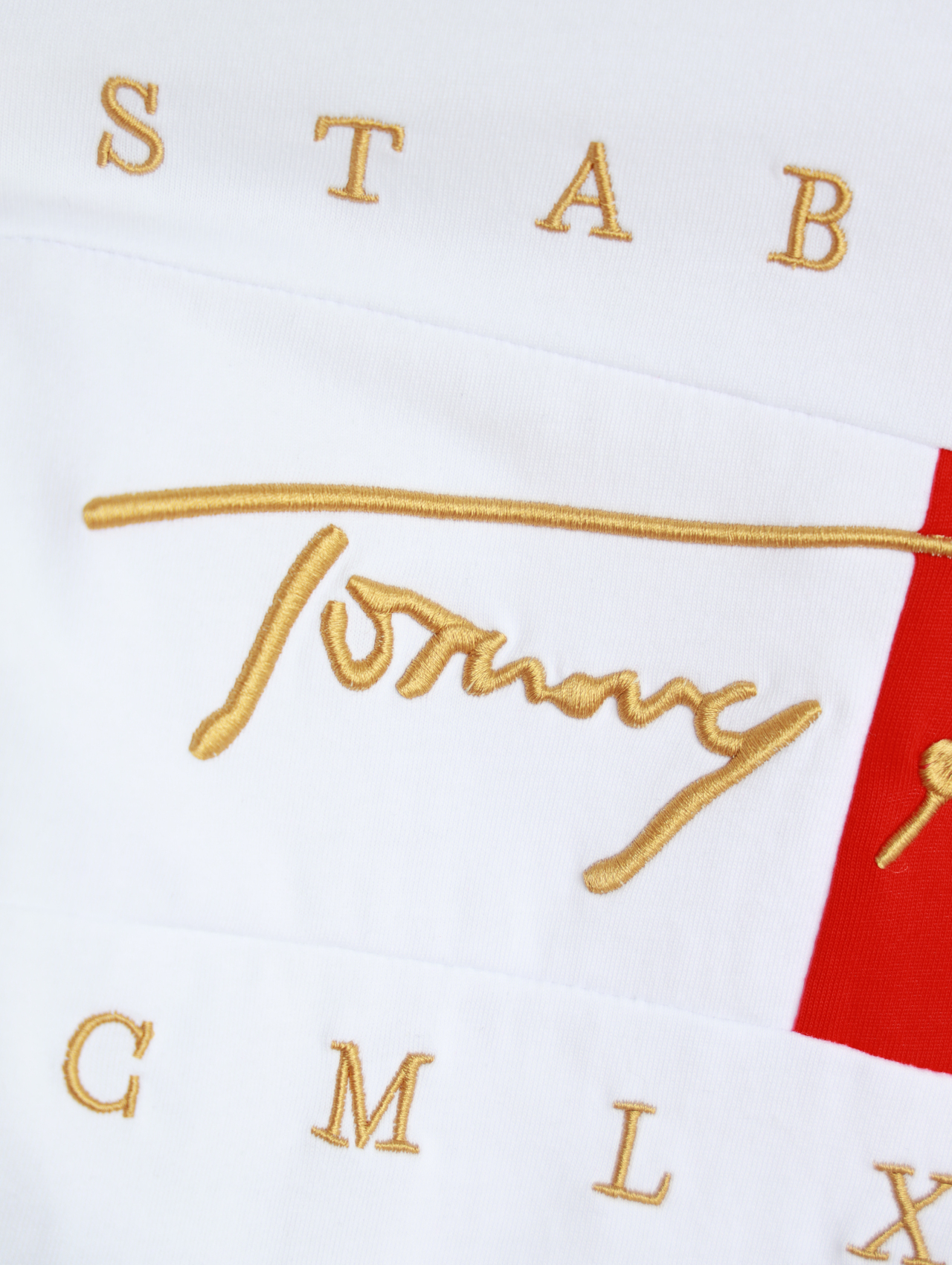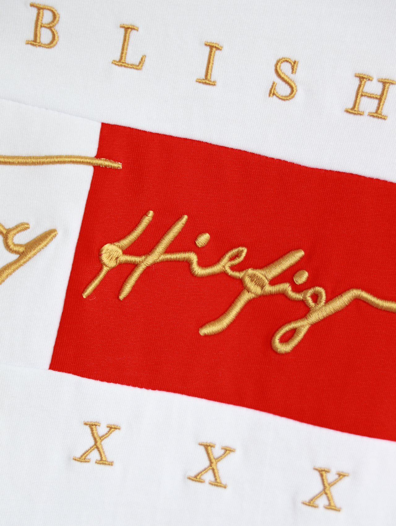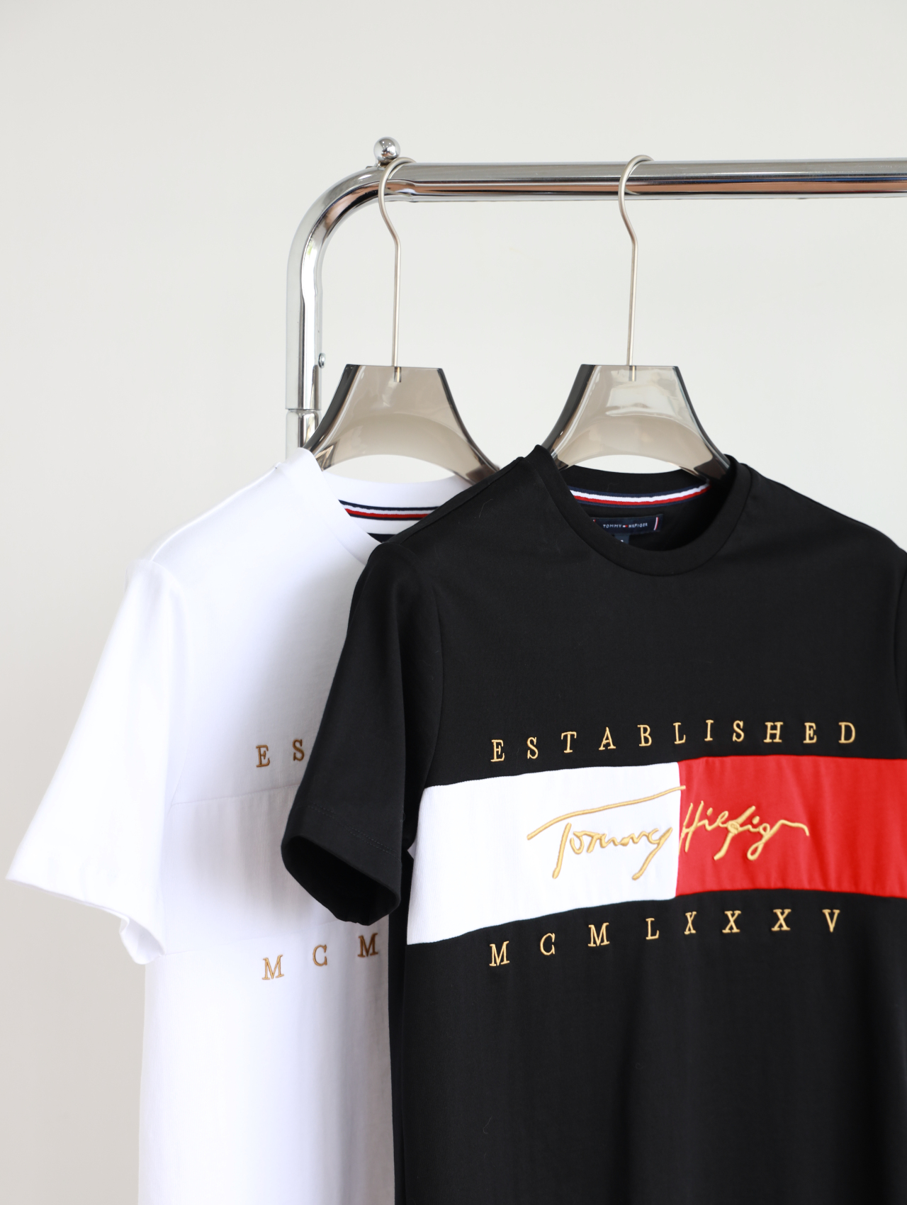 T.H 字母LOGO 重工草体刺绣 圆领短袖T恤