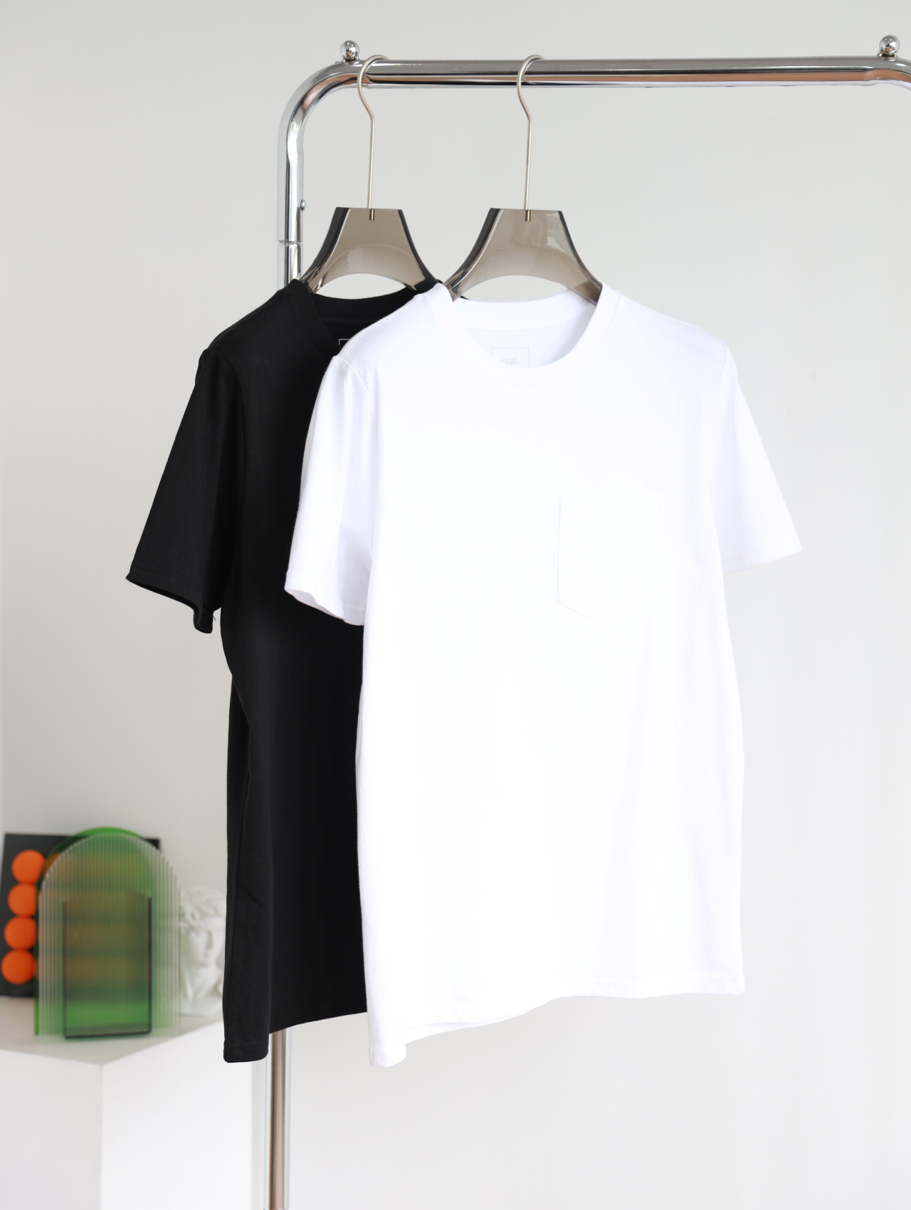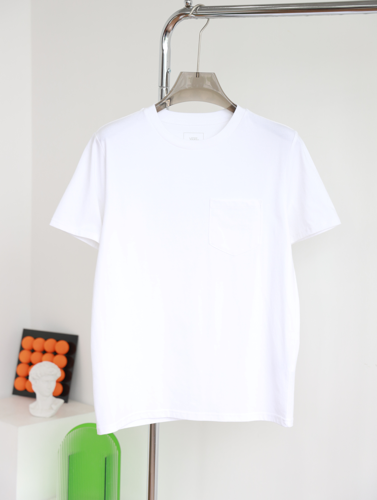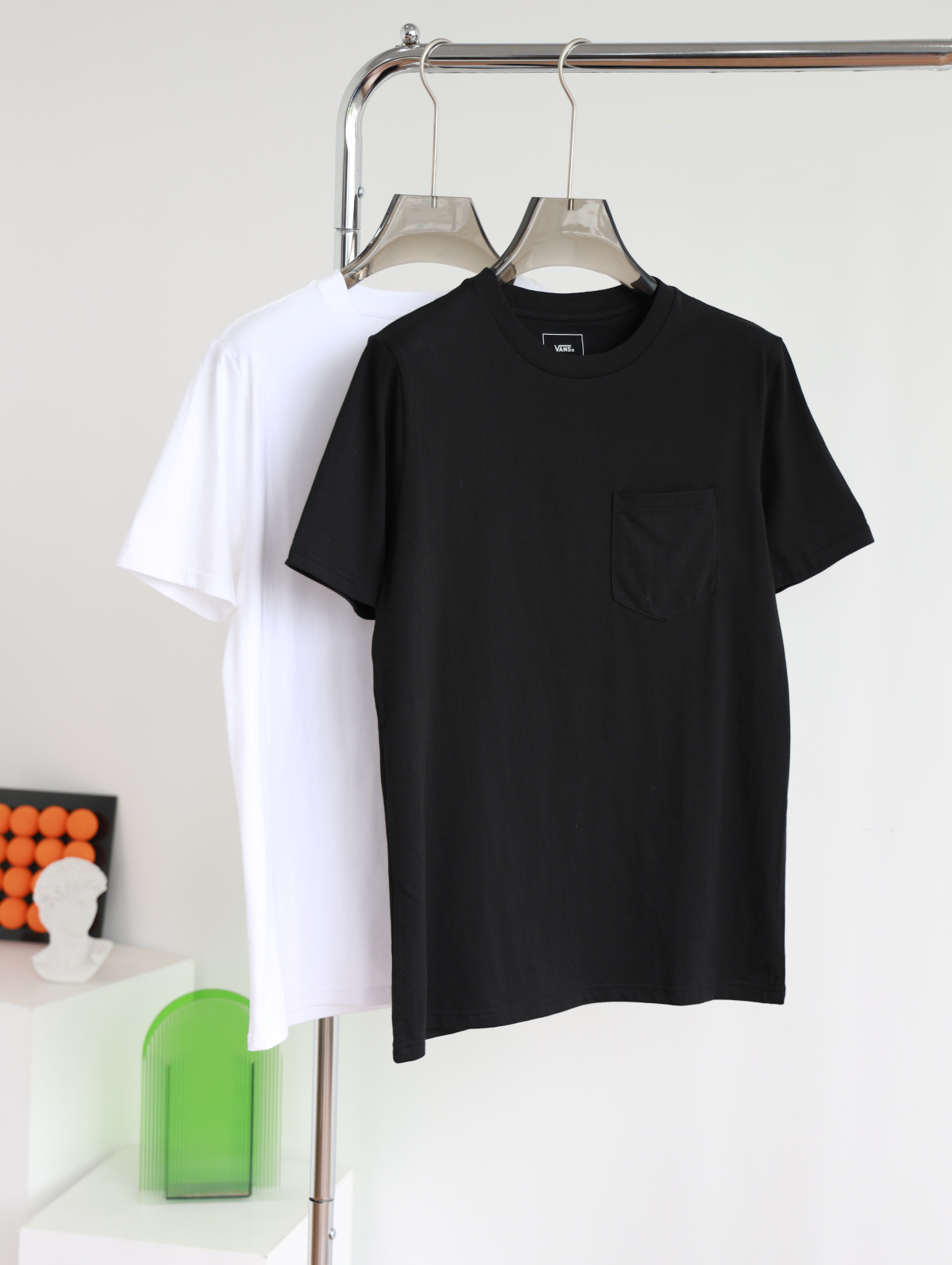 正面纯色 配了一个胸口POCKET 插袋设计 极简风格。