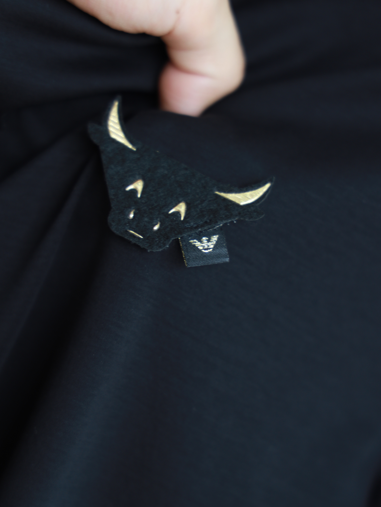 胸前的牛头系列,经典EMOJ1元素魔术贴,可以拆卸