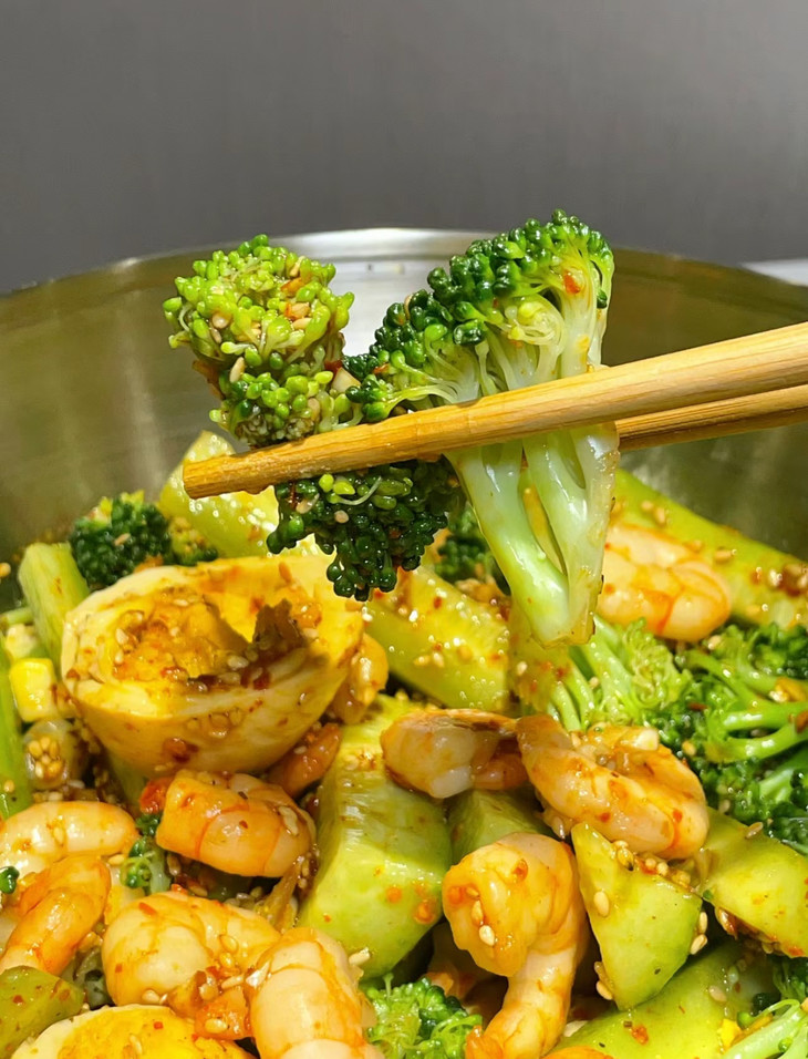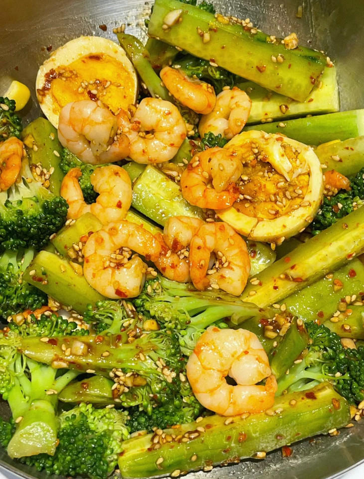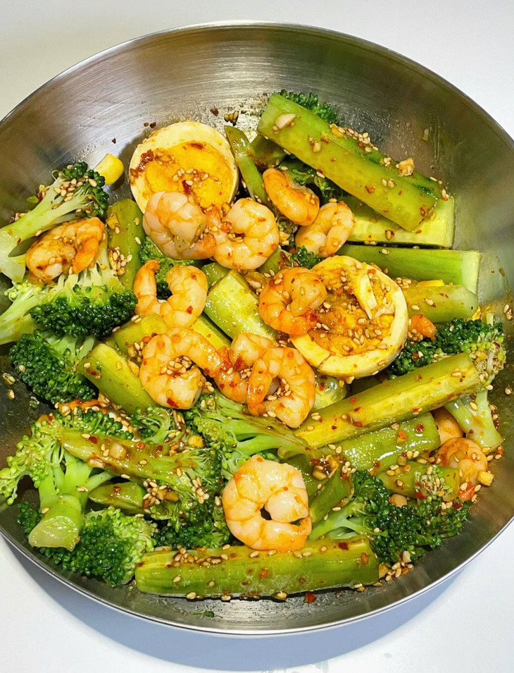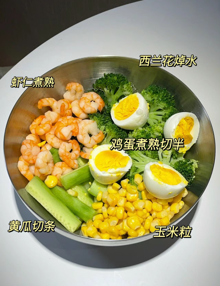 西兰花、虾仁、鸡蛋、玉米粒、黄瓜