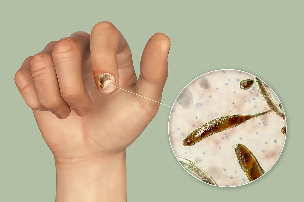 例如:如果你有脚气(手足藓),还常穿不透气的鞋,真菌就有可能感染到脚趾甲里面。