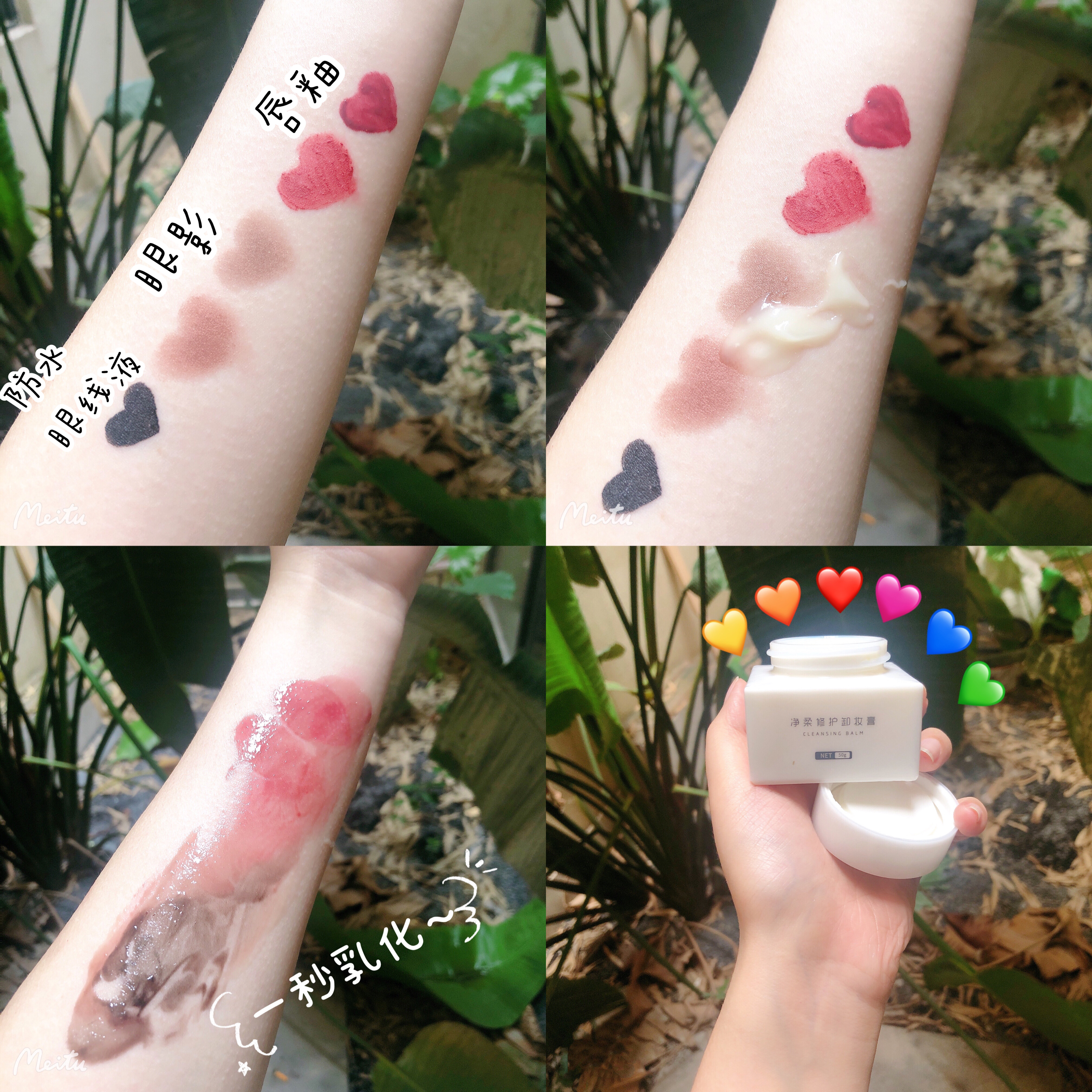 可以看到,「净柔修护卸妆膏」轻轻按摩即可乳化、溶解粉底液、眼线液、眼影、口红等多种彩妆,随后的冲洗也不需要大力揉搓,日常妆面轻松洗干净。可以说实测表现十分优秀了,并且还超保湿有没有!!!