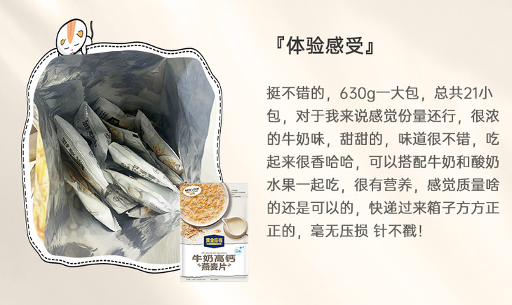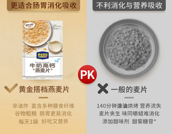 3.健康0添加:黄金搭档燕麦片承诺无色素、无防腐剂,让美味更健康。