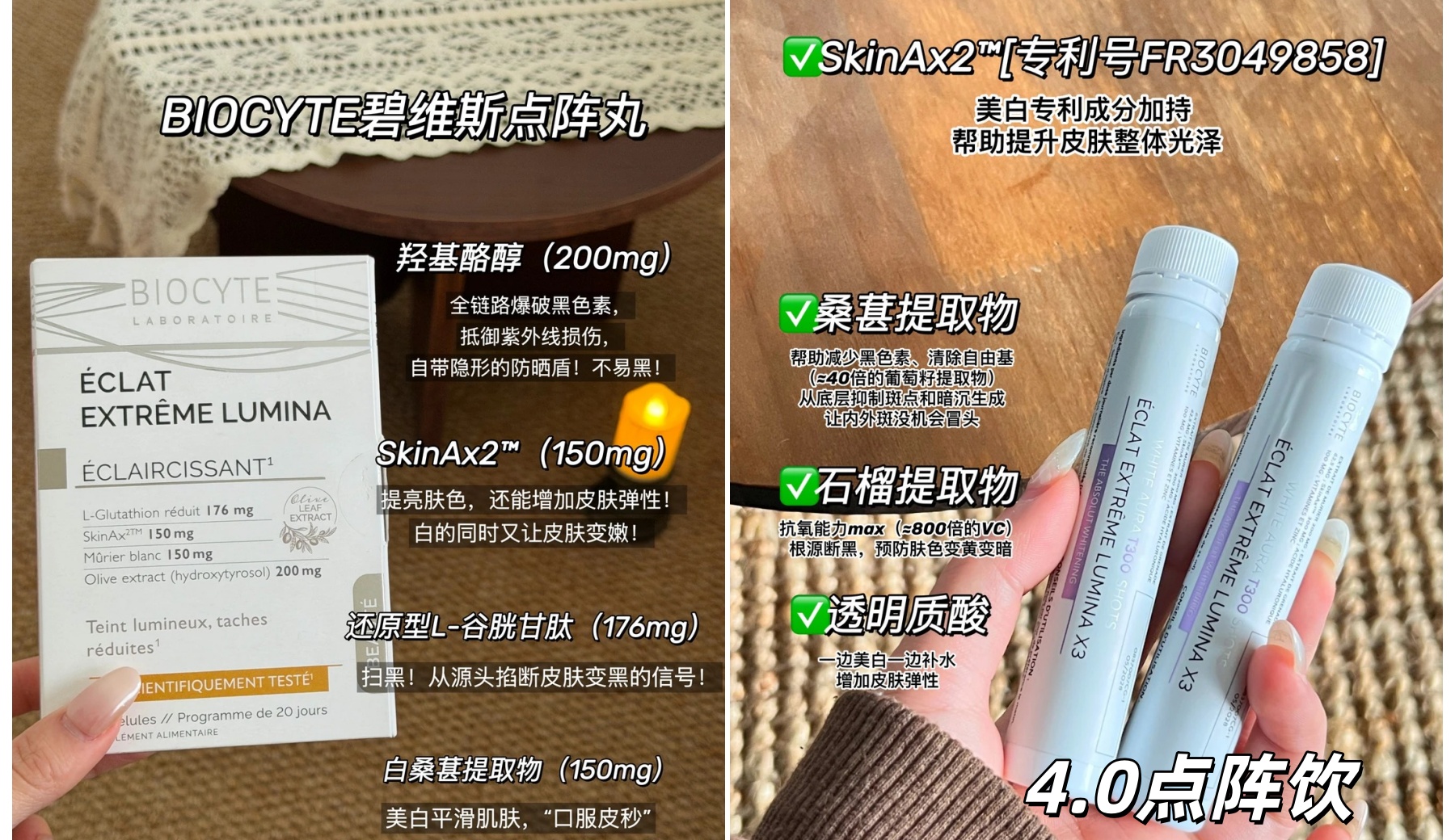 抗糖丸(去黄打底)+ 点阵系列(淡斑提亮)= 韩女同款透亮肌