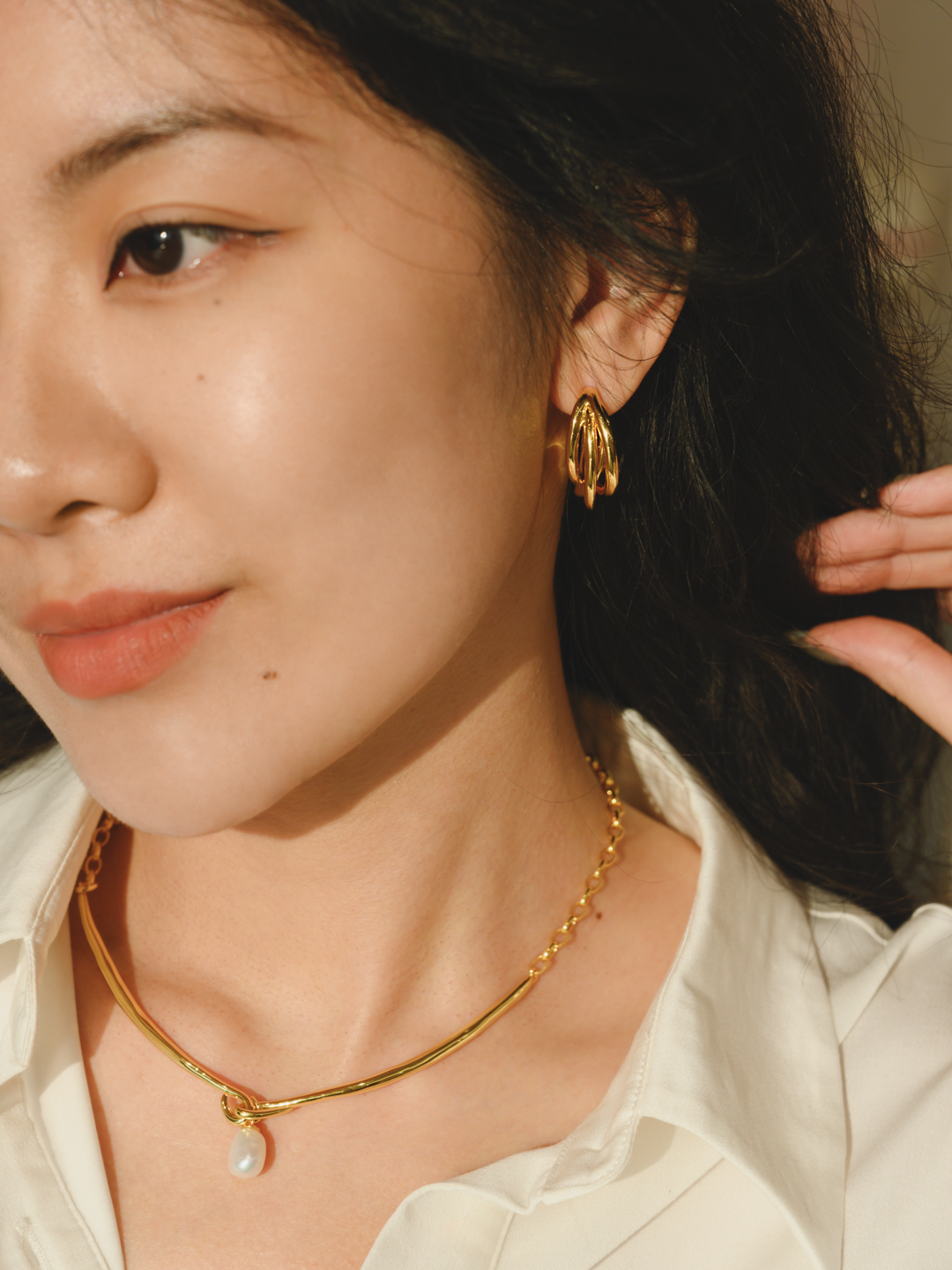 平时我就特别爱买这种简约不失小巧思的配饰,闭眼搭上衣、裙子都不出错。跟衬衫、牛仔裤搭就会更慵懒、酷飒;跟小碎花裙子搭就会多一丝女人味同款还有银色(右下)。