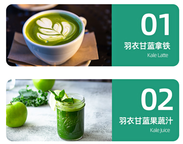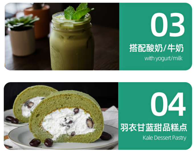 动手能力强的朋友,还可以试试用羽衣甘蓝粉制作蛋糕、曲奇等甜点。