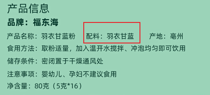 福东海羽衣甘蓝粉,原料仅为羽衣甘蓝,无其他额外添加。