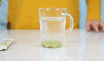 我们也做了一个小实验:在倒了油的杯子中加了一点将羽衣甘蓝粉,很快一大块油脂沉到杯底,这种咣叽沉底的感觉,光围观便令人倍感舒适。
