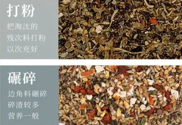 很明显,这就是拿残渣废料当好原料糊弄人,以次充好。