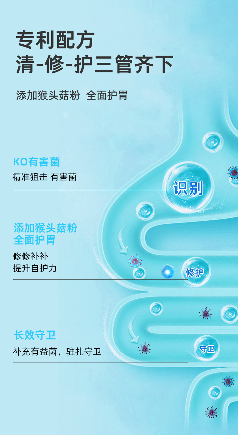 ✅3层包埋技术+特有激活因子+6大益生元添加,入口活性高达98%✅特别复配5%猴头菇粉,保护胃黏膜,改善胃健康!