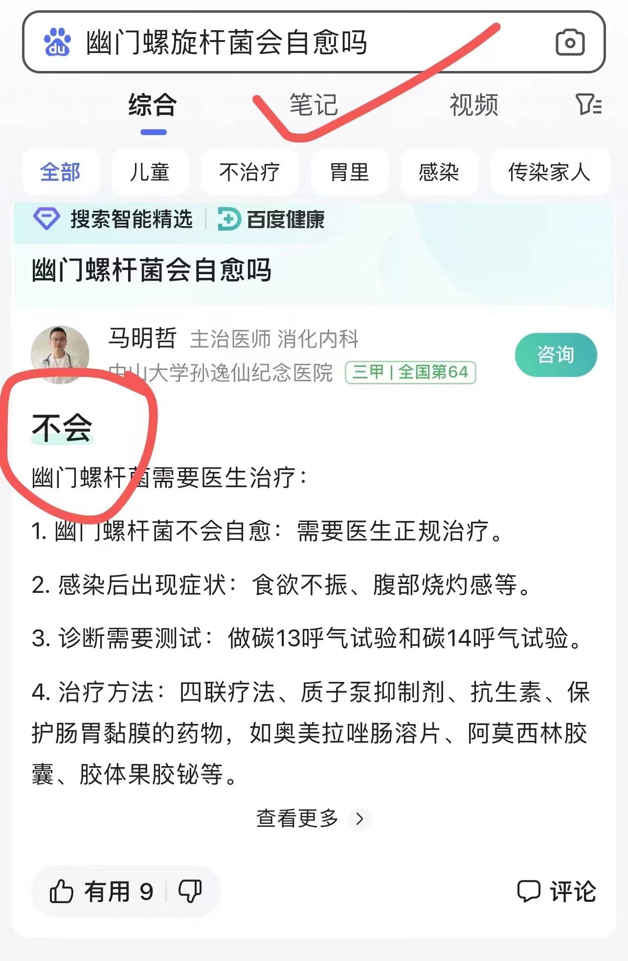 🔺感染幽门螺杆菌会引起胃部不适,出现吃完饭后嗳气、恶心、腹胀等症状
