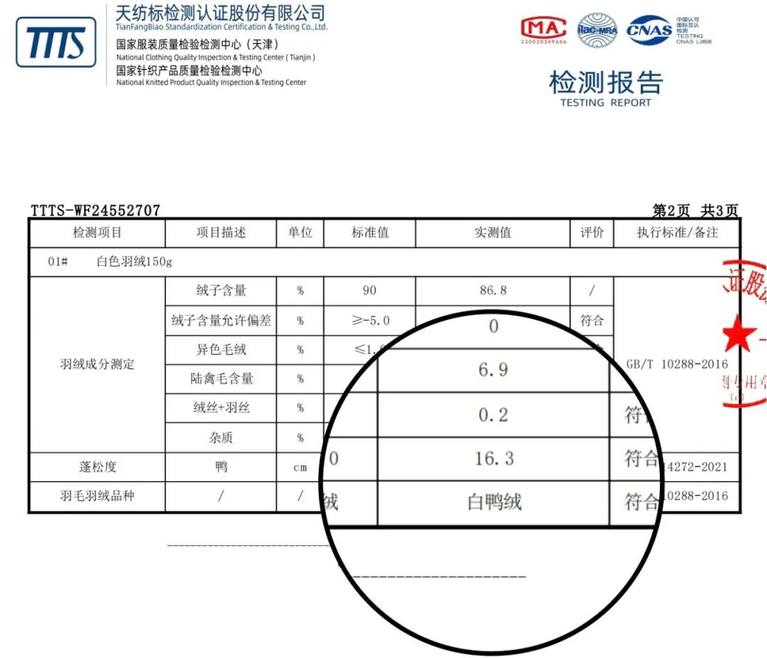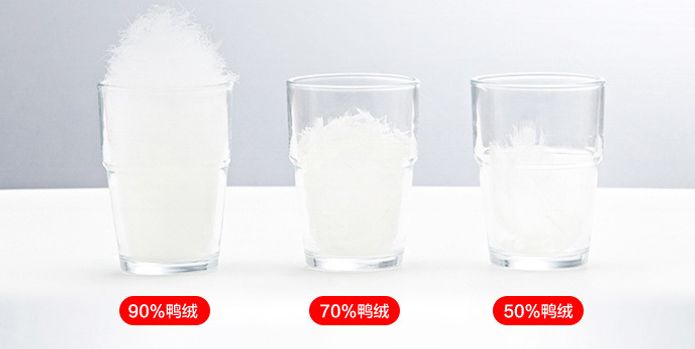 70%——达标、80%——抗寒级别、90%以上——尤蕞,再高的含绒量是不存在的。给大家看一下水墨集云选的鸭绒,松开立马就嘭起来了~