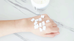做了个小实验:涂抹完这款面霜,纸巾碎屑洒在手背上,肌肤一下就吸收了,不会黏在手背上。