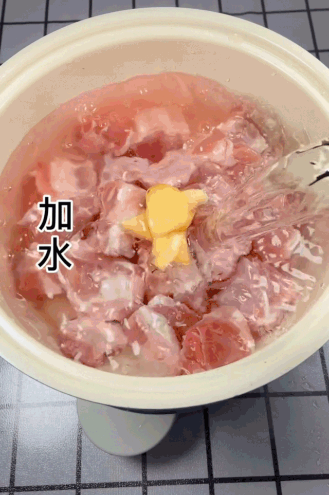 1.排骨冷水下锅,加入姜片、料酒去腥,大火煮十分钟后撇去泡沫小火二十分钟。