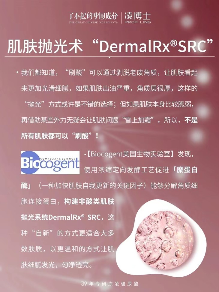 凌博士「抛光水」构建非酸类肌肤抛光系统DermalRx SRC,相对于刷酸,这种“自新”的方式更温和,无需建立耐受,摆脱肌肤暗沉粗糙,让肌肤重现光彩。