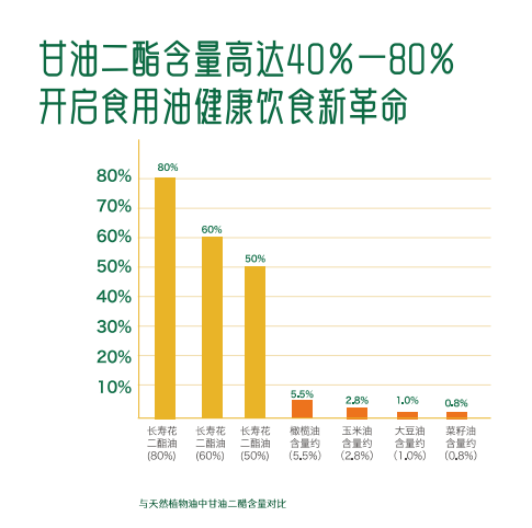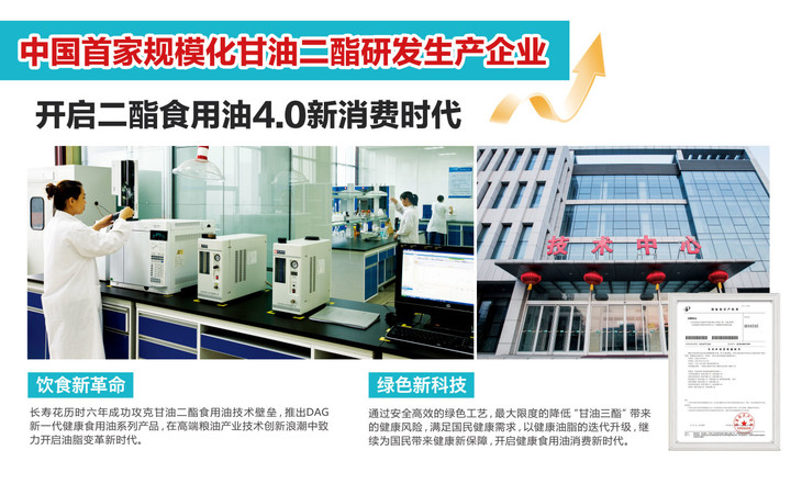 长寿花于2016年聚焦研发二酯食用油,历经6年攻克甘油二酯食用油生产技术,推出DAG含量达50%的新一代健康食用油系列产品。掀起食用油饮食革命,开启新一代二酯食用油新消费时代