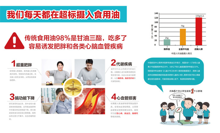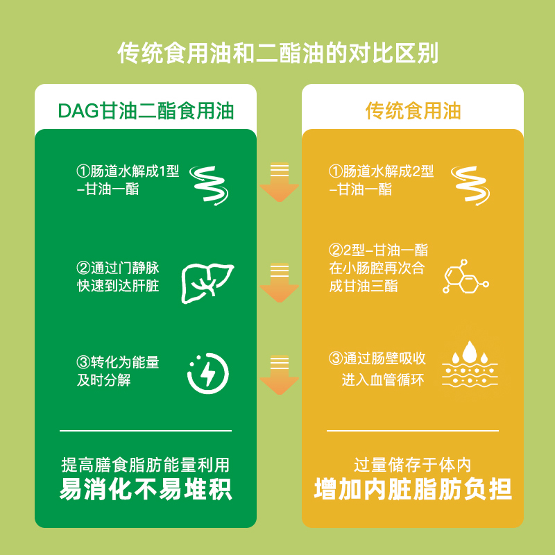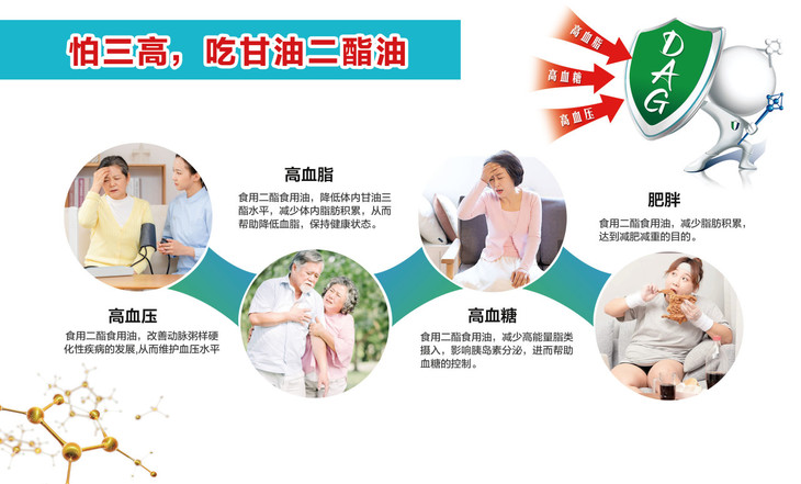 将家庭饮食传统烹饪用油换成二酯油,减少甘油三酯的过量摄入堆积,同时可以在正常烹饪饮食过程分解身体多余脂肪。推荐老年人或有身材管理需要的人群使用。
