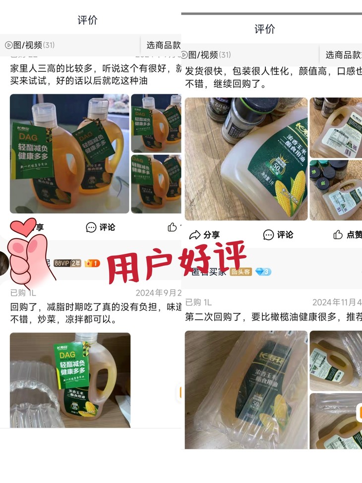 关注产品标签,看产品实际二酯油的含量占比。优秀的二酯油中的甘油二酯含量会比较高,一般都不低于40%。不是越贵的越好