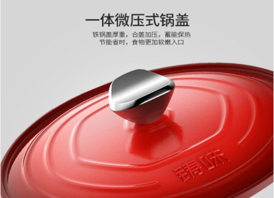 这都得益于它锅盖的加沉式的重锅盖,往锅身一合,严丝合缝,做菜时水分就能少蒸发,尽保留食物的原汁原味。