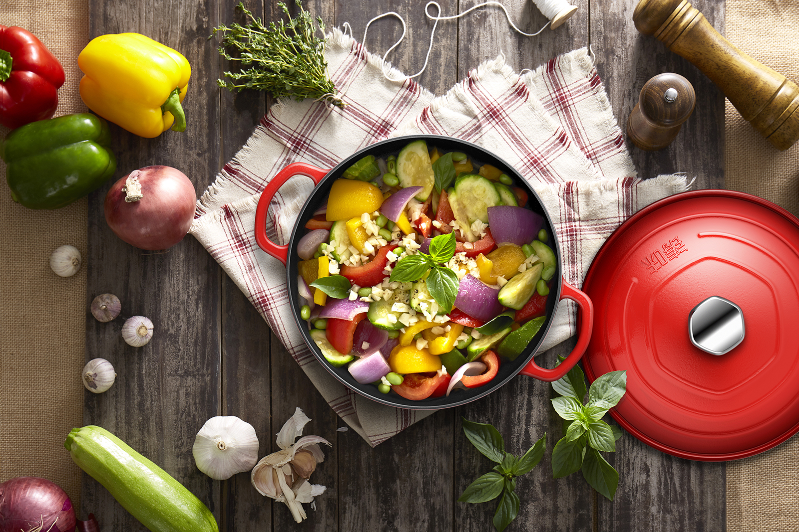 生铁层在浇铸过程中,内部的碳铁形成类似蜂巢一样的结构,可以在烹饪的过程中储存大量的热,恒温的释放。这样烹饪,食物在一个恒定高温的空间里,快速吸饱热量,释放美味。