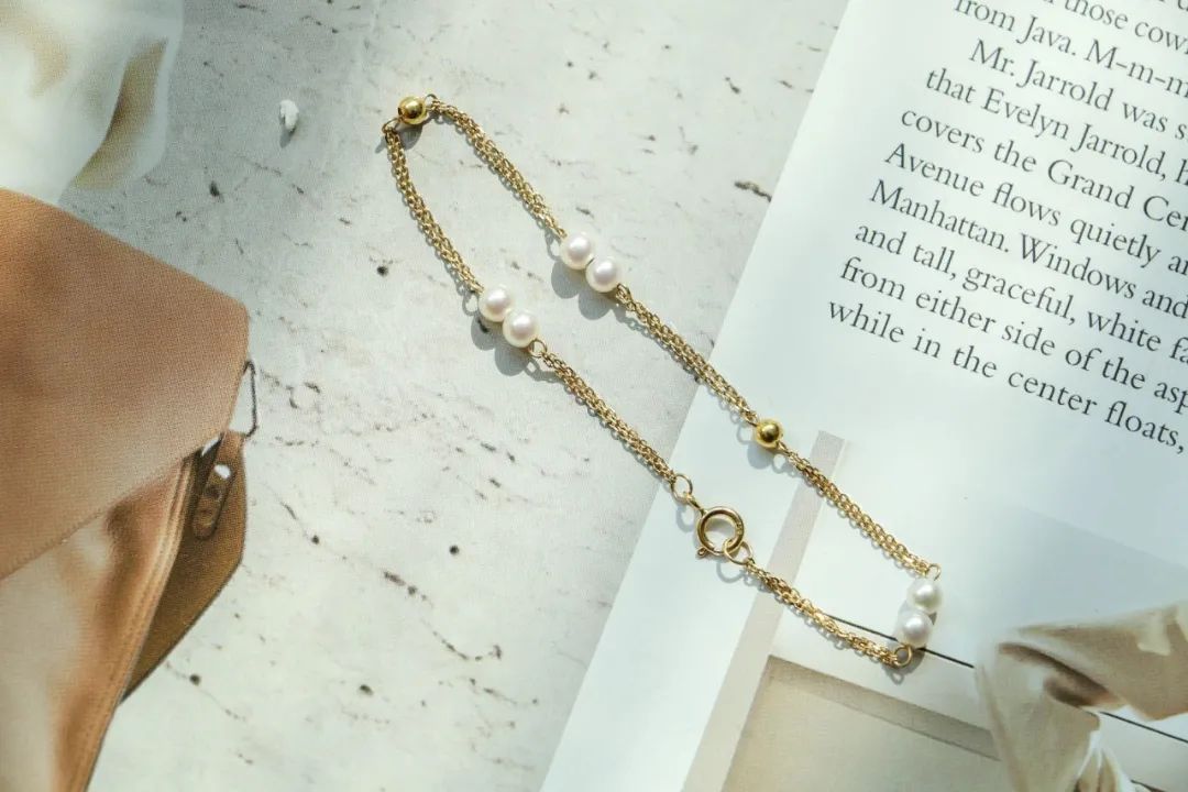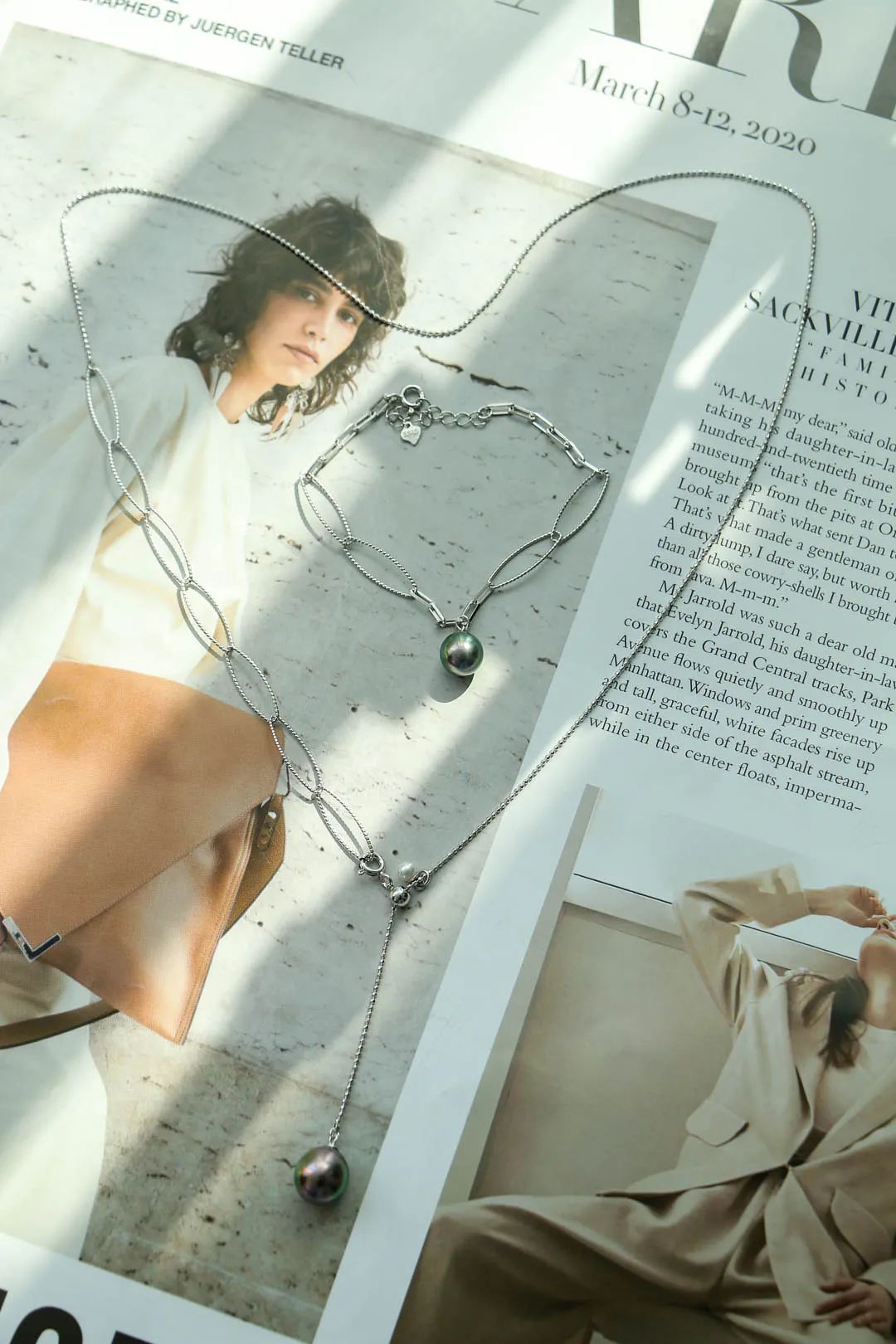 未满珍珠项链,手链一套,清新又轻盈,点缀在颈部,手部,小小的珠光,就可以营造”费了一点小心思而简单的打扮了呢”的好印象。