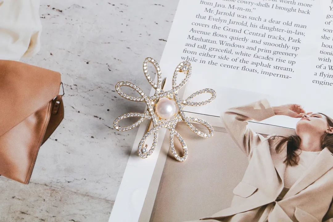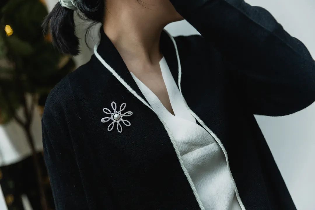 胸针吉祥结,金银两色,经典圆形胸针,可以搭配初春毛衫,闪亮锆石,高光珍珠,瞬间提亮。
