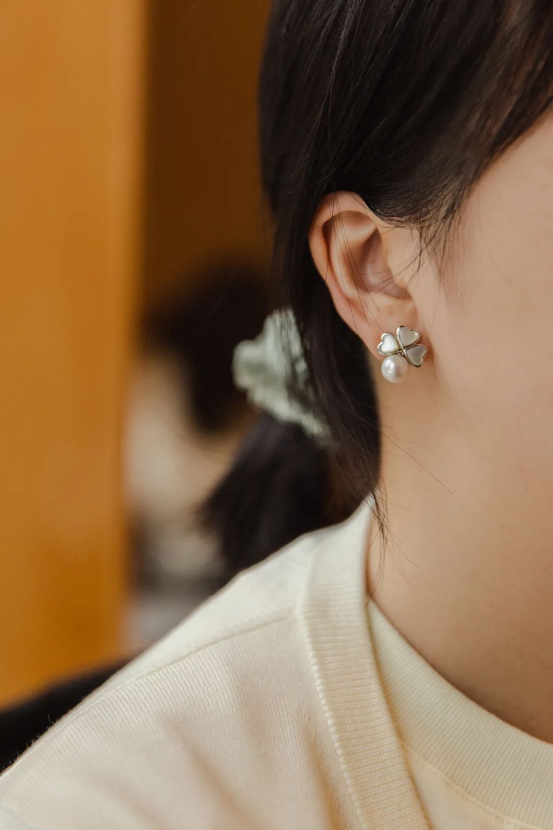 女神节上架的蝴蝶款,三叶草款,用珍珠,母贝,925银,组成轻奢温柔的款式,摇曳耳畔。