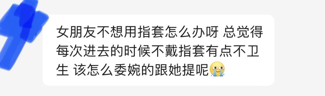 3、防护措施要准备好。戴指套(全称为手指安全套)、口交用口爱膜、共用玩具要戴套、适当多用润滑液避免摩擦过度受伤。