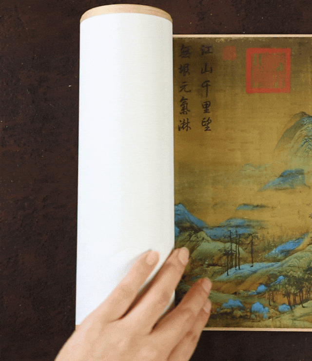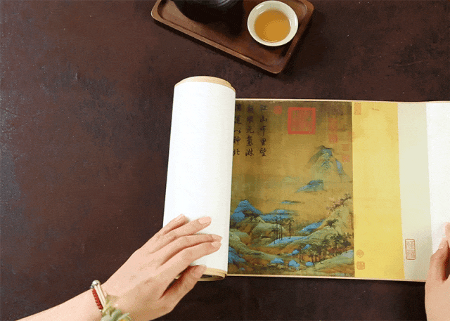 前面提过《千里江山图》颜料均提取宝石或者药材,对它最好的保护就是尽可能少展开。