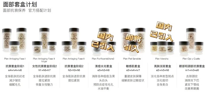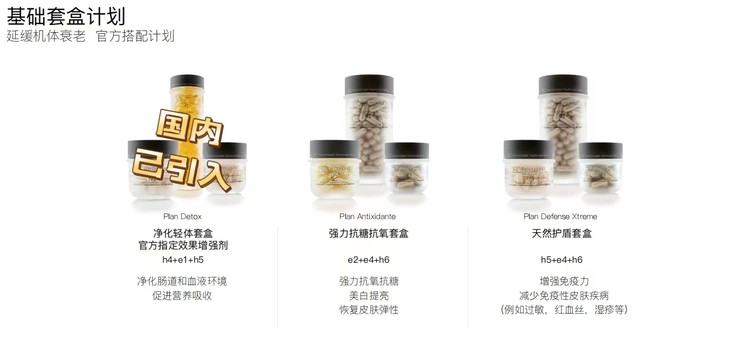 她的搭配方式是随着对自己当下状态的觉察而调整的,日常春秋服用净化轻体套盒(3个月为周期)、抗衰老套盒阶段1和阶段2。
