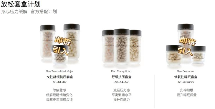 到了夏天保持身材,就会服用塑型减脂套盒,压力大的时候服用女性舒缓抗压套盒。像是舒缓抗压套盒,可以仅仅是阶段性服用,大概7到10天有效果。
