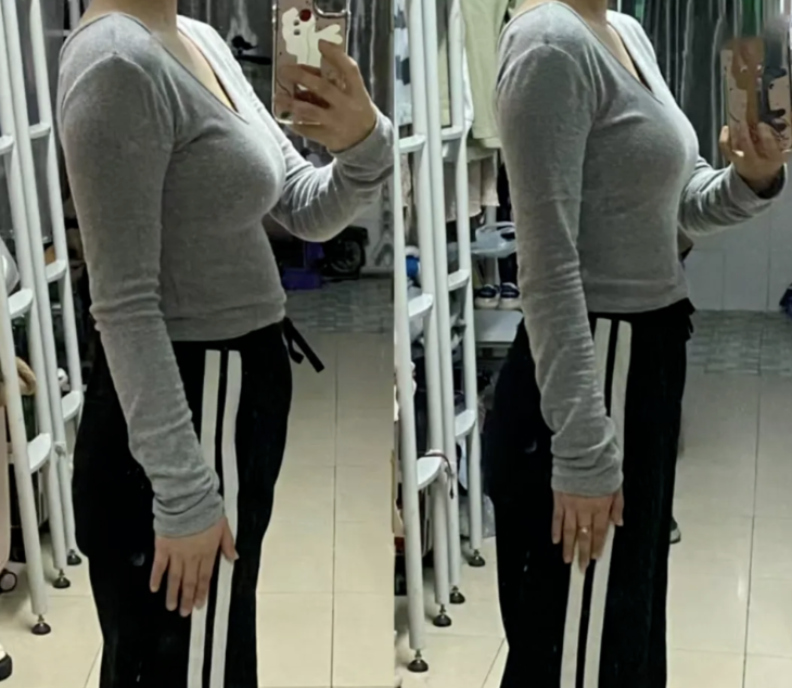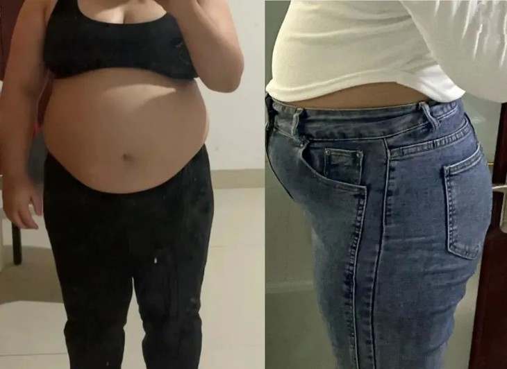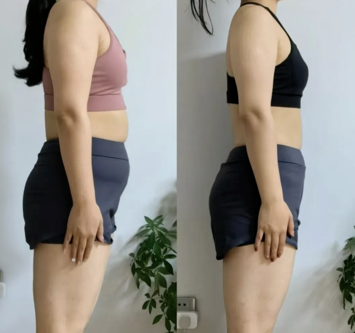 而且还惊喜发现穿裤子老往下掉,肚子直接瘪下去了!