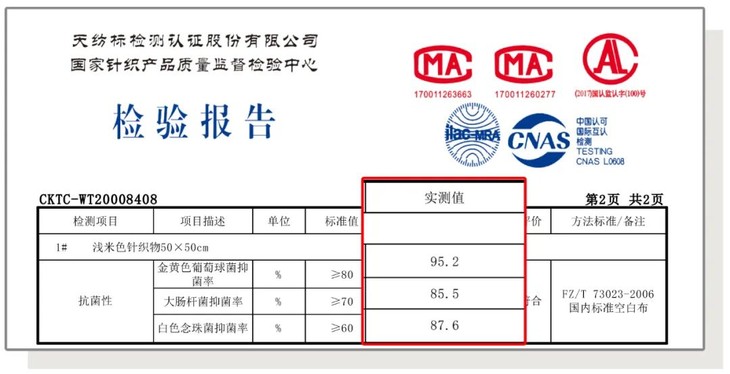 经专业机构的检测,它对金黄色葡萄球菌等生活常见菌的抑制率,最高可达95.2%!