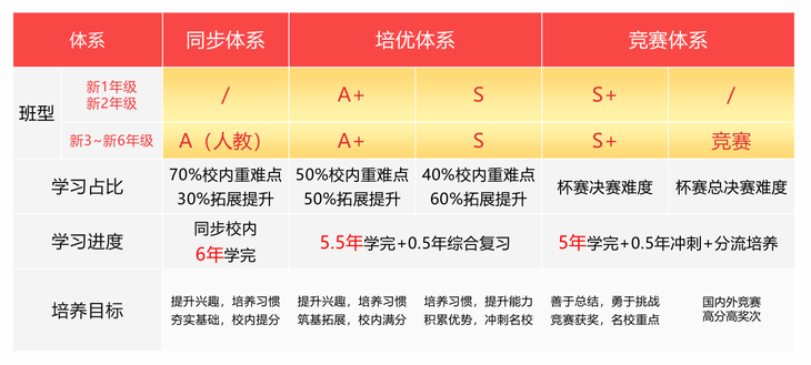因此,竞赛体系的班级也分成了S+班和竞赛班两种班型,老师会根据孩子的目标以及学习潜力推荐孩子适合的班型。
