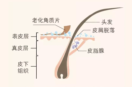 我们头皮里有一个结构叫做皮脂腺,皮脂腺的开口在毛囊里,毛囊是产生毛发的器官,毛发从毛囊里长出来,皮脂腺的开口是在毛囊的上端,这样它产生的油脂就可以顺着头发流出来。