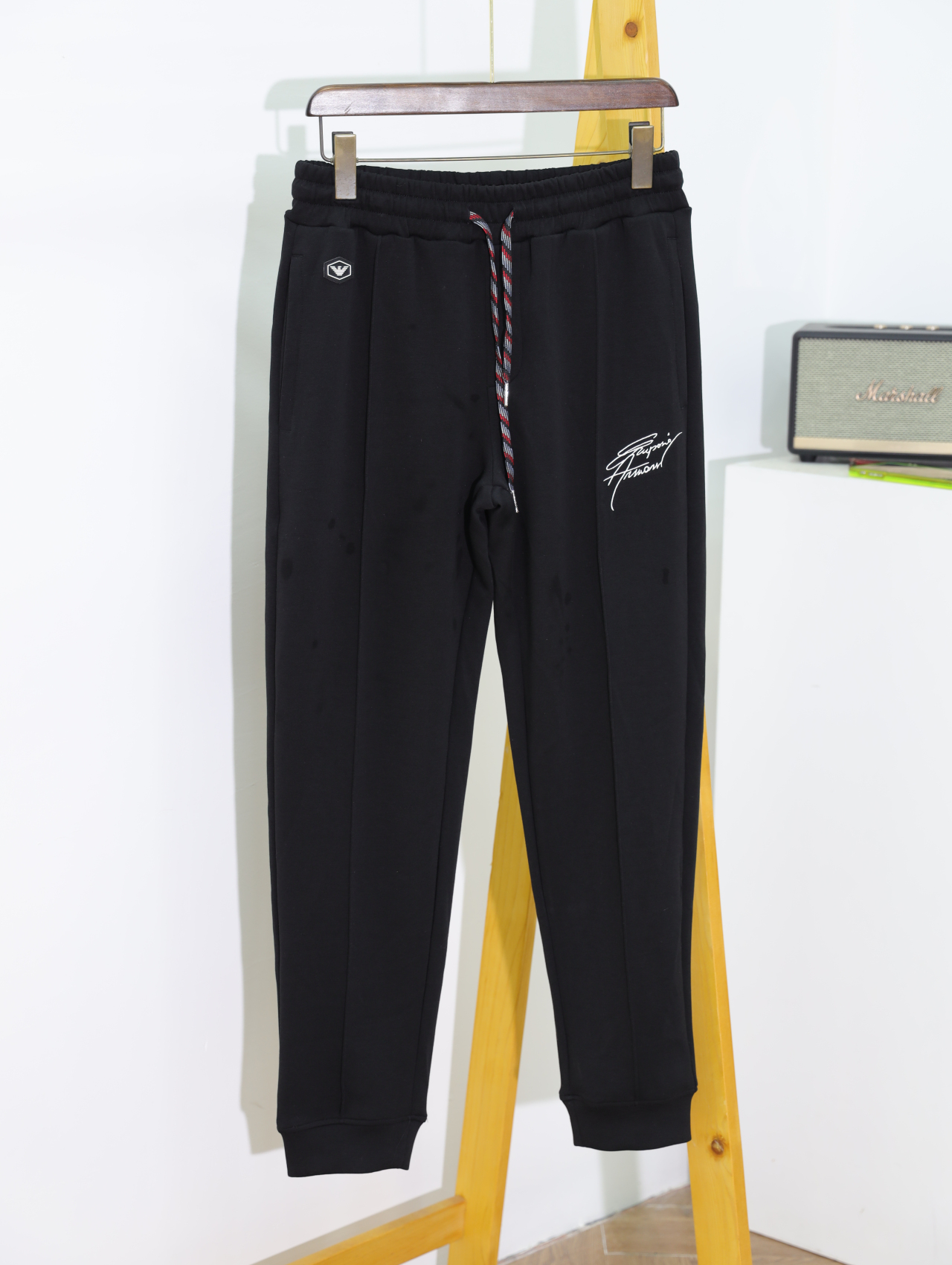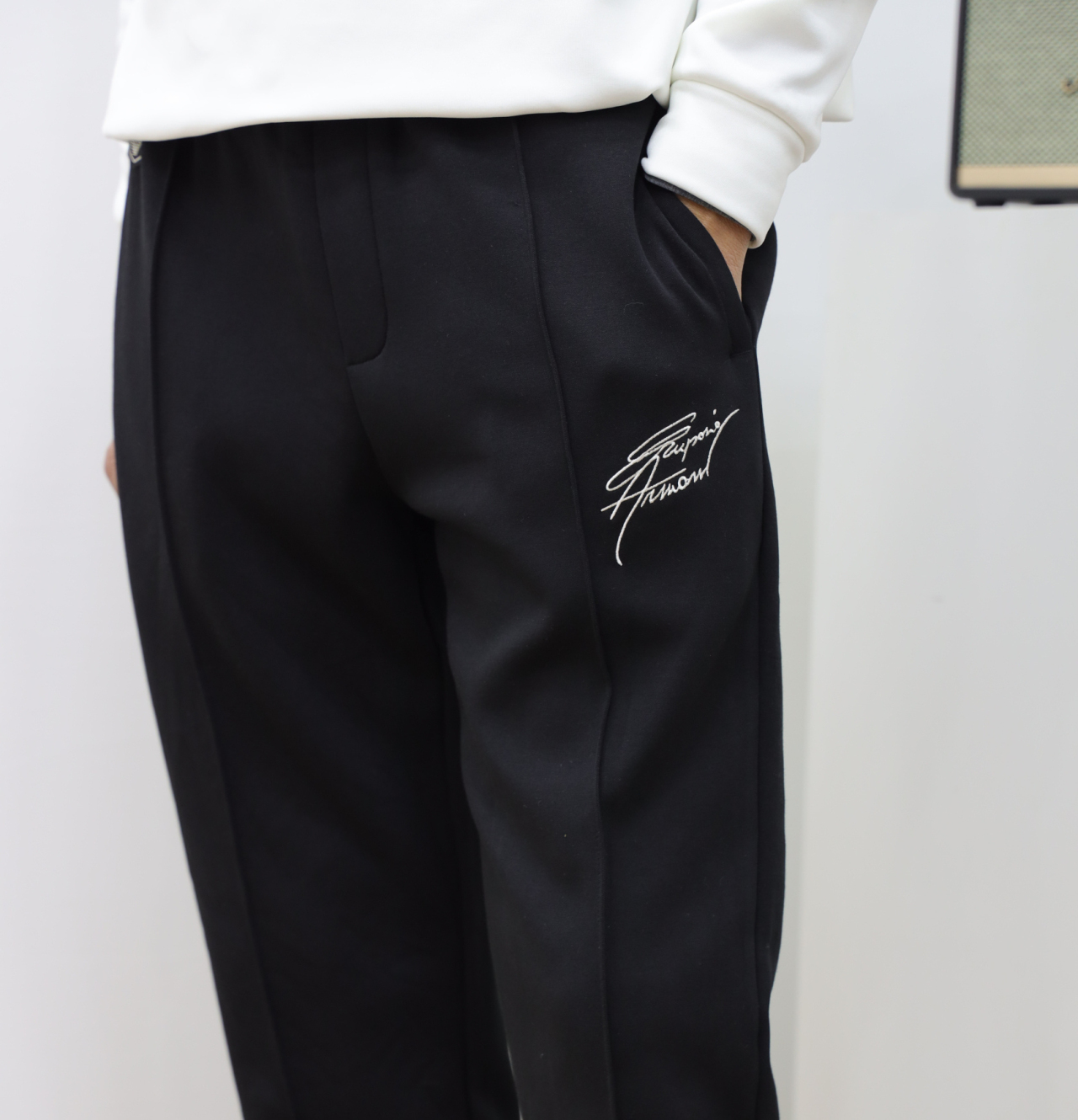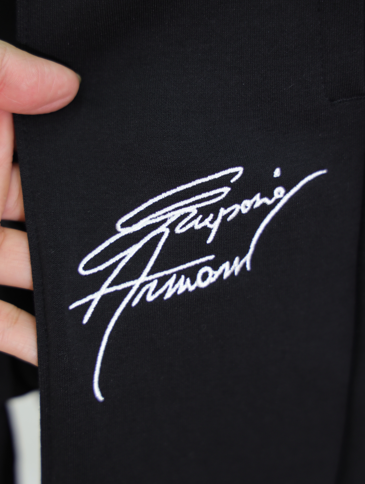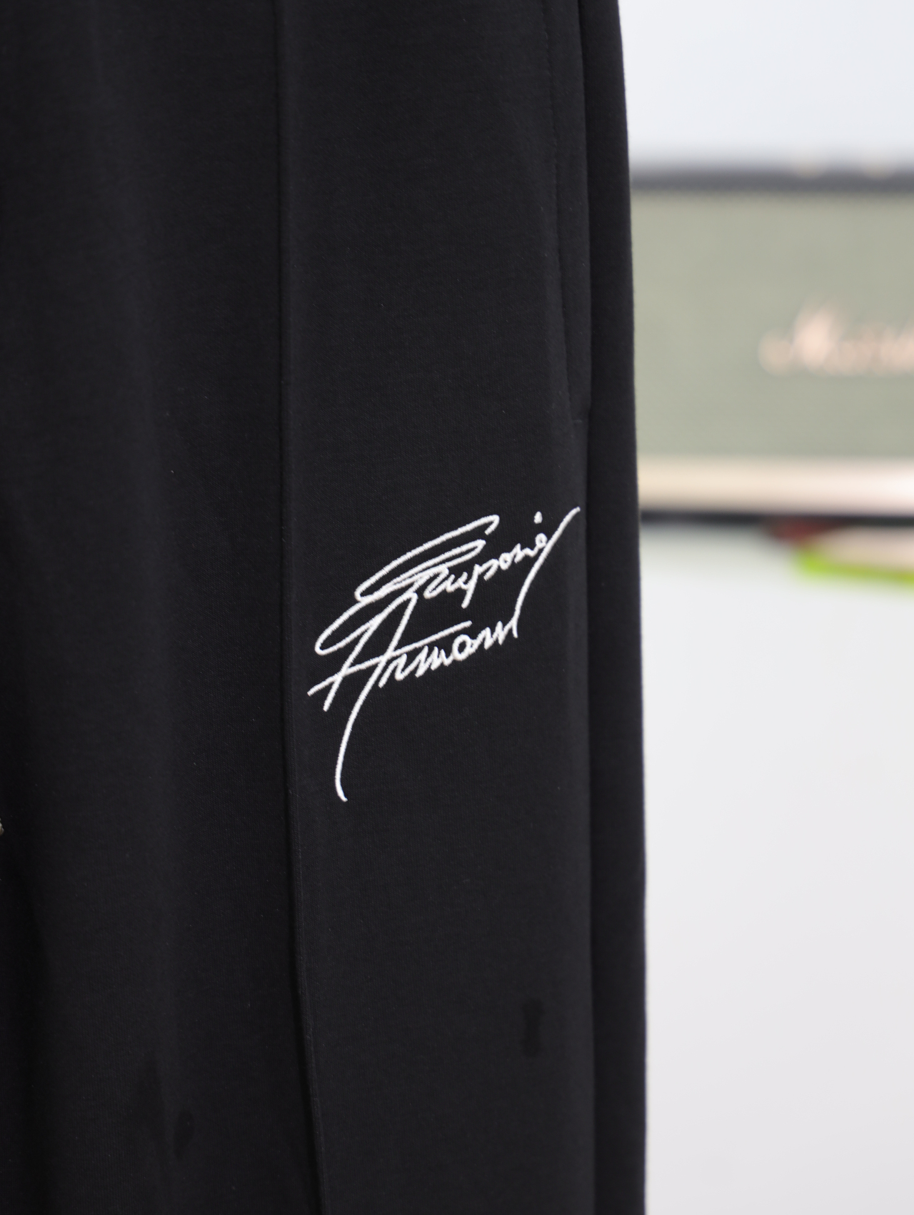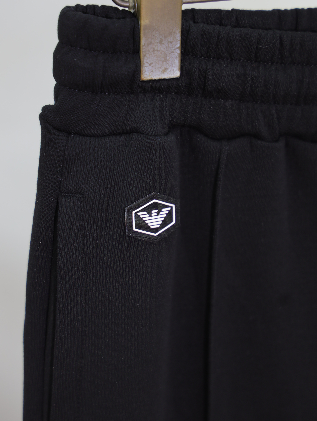 大腿侧边刺绣是这款裤子的点睛之笔,配上另一侧的小飞鹰小标,整个裤子精致又百搭