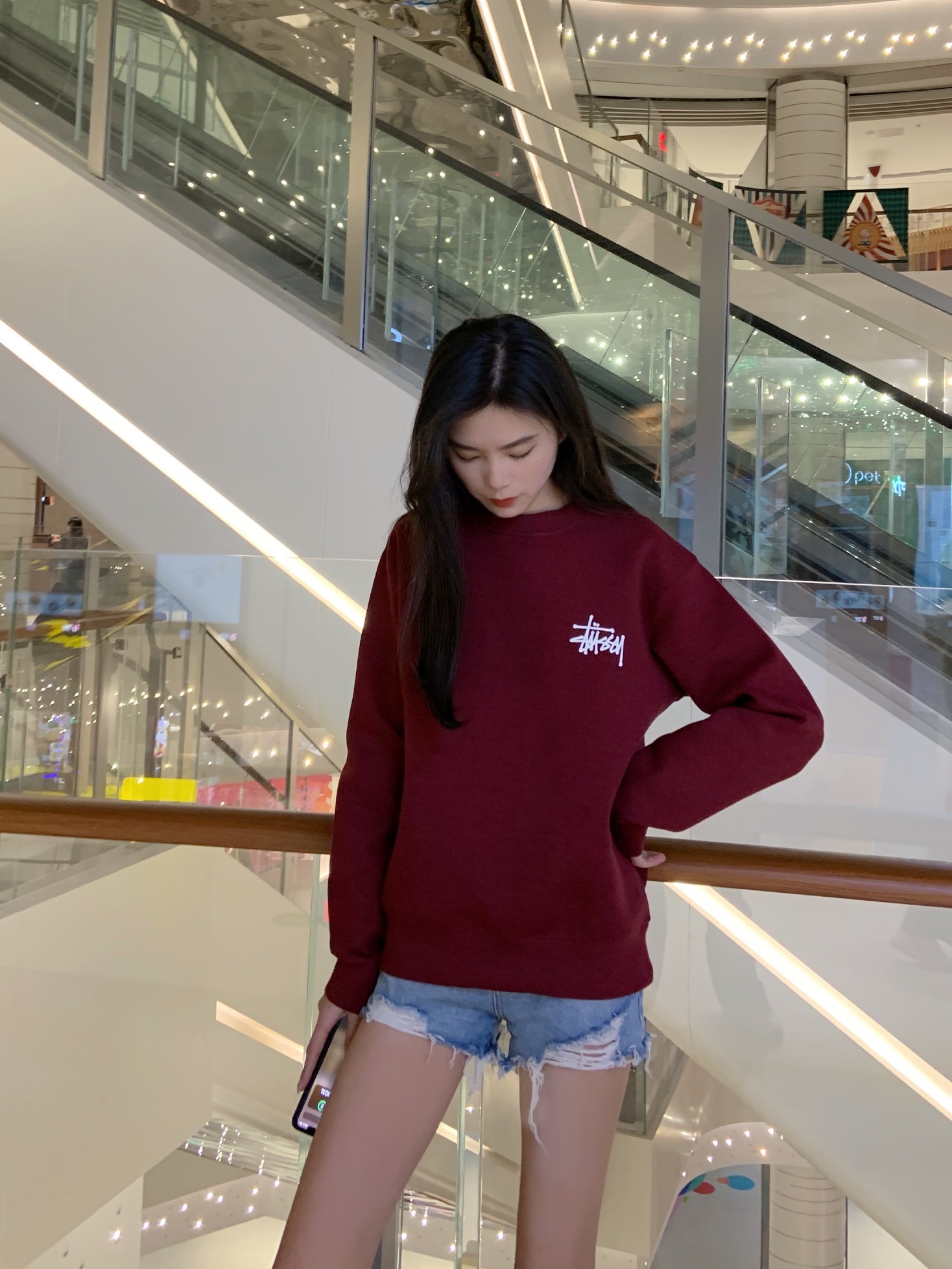 极简的设计,搭配卫裤牛仔 甚至短裤 打底裤都很妥