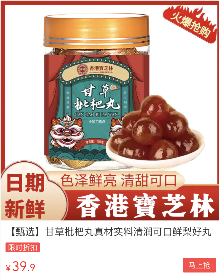如此一来,肺气通了,肺热清了,痰化了,问题就迎刃而解了。立秋后是“养肺黄金期”,可可就给大家分享一款调养好物——香港宝芝林的甘草枇杷丸👇