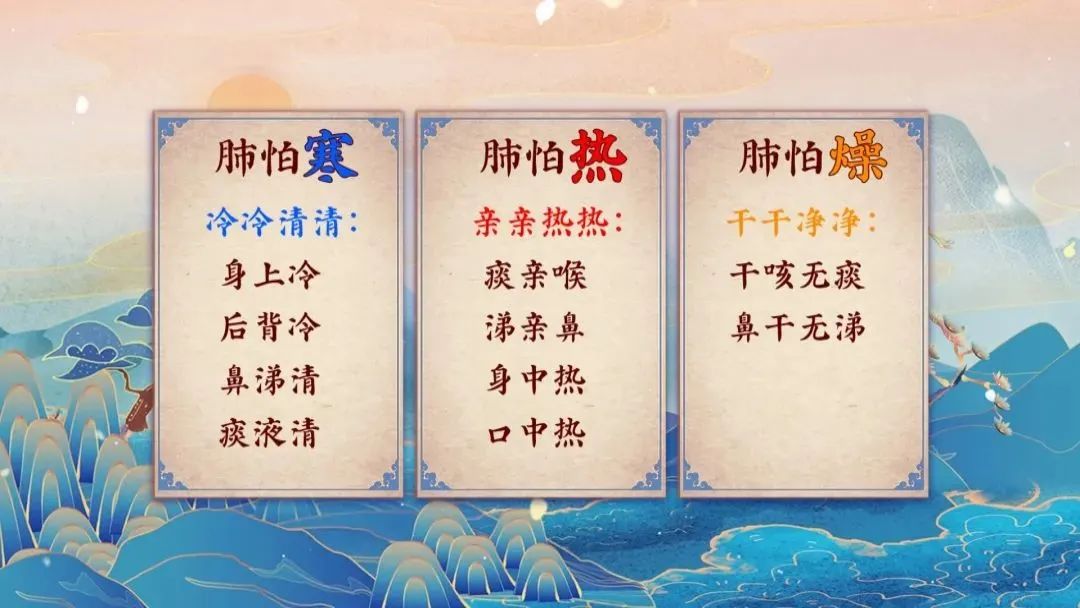 肺怕热、怕寒、怕湿、怕燥,当这些外邪侵袭肺脏时,肺内的津液会凝聚成痰,让我们感觉喉咙不利爽,像有异物似的黏糊糊的,忍不住清嗓子;