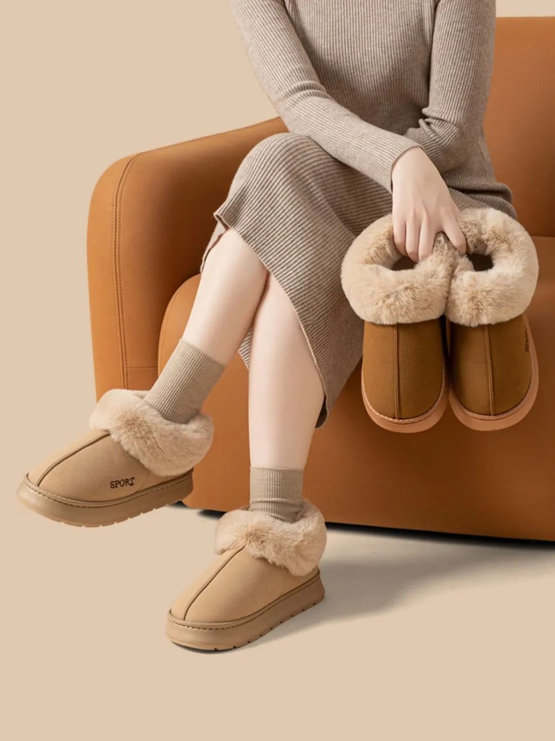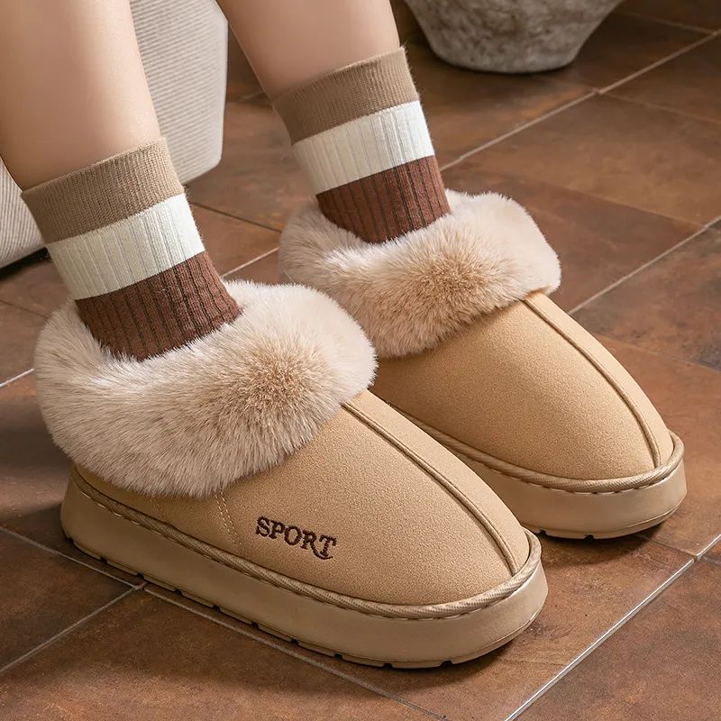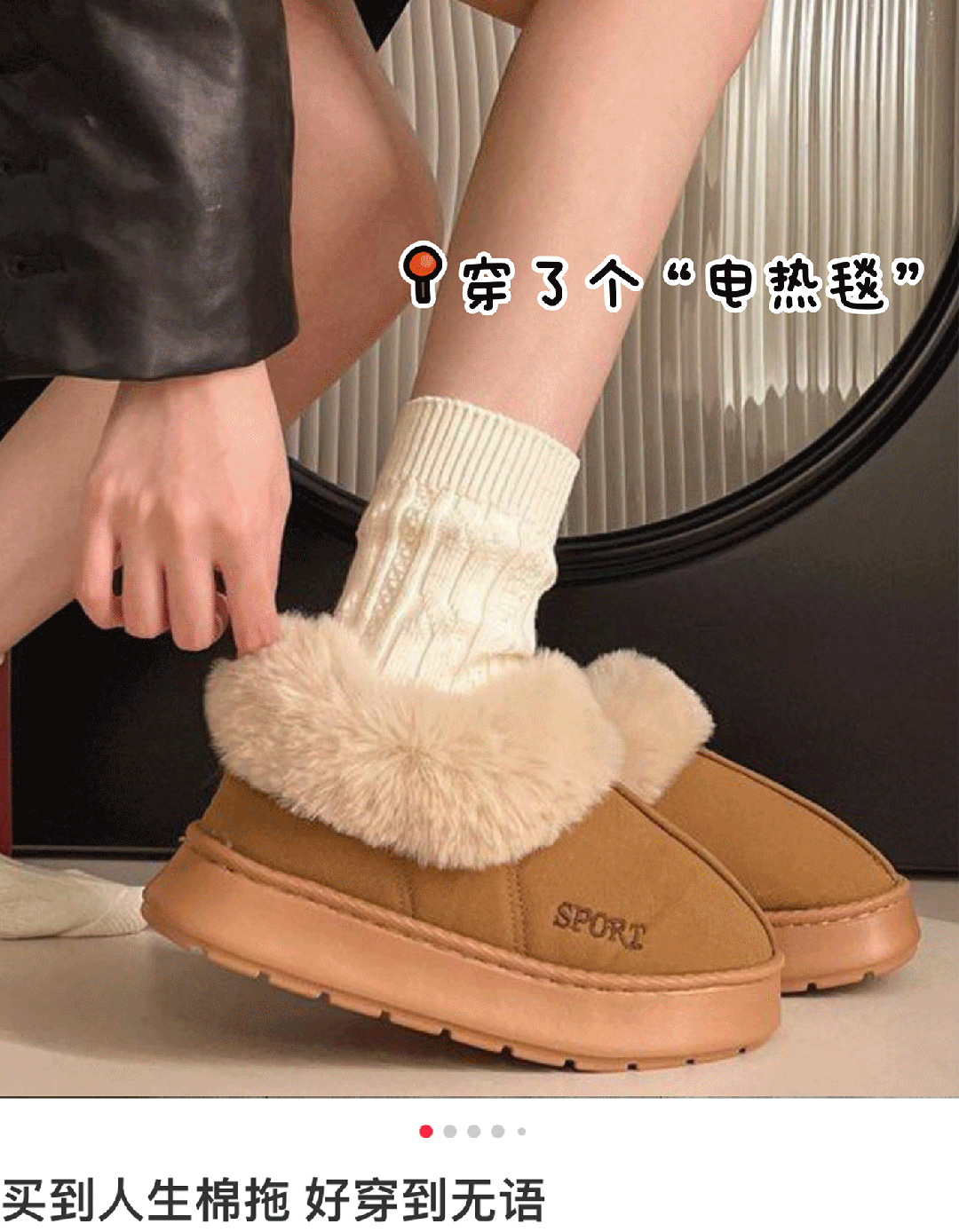 这款棉拖首先从颜值就胜了!它不止是一双家居棉拖鞋,还是可以外出穿的简易版雪地靴!