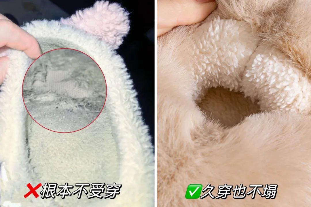 它厚实绵密的绒毛从里到外,一抓都是绒,和那些穿几天就塌毛的一次性棉拖根本不是一个等级!