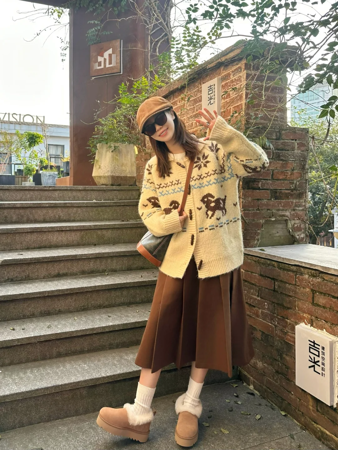 或是配条直筒、阔腿牛仔裤,盖住小绒毛,又是不一样的风格。