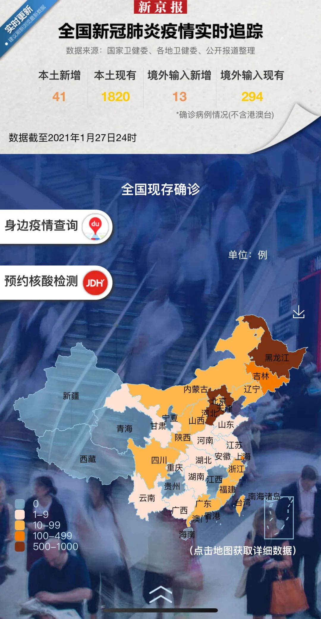 疫情最新数据、重大疫情报告、疫情相关资讯,以及多种实用功能,在新京报官方微信每条文章的底部、新京报APP首页的推荐区,点击进入H5,给你最及时最实用的疫情信息。