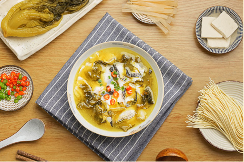 不用切菜杀鱼,里面有现成的酸菜和黑鱼片,连配料都准备好了。