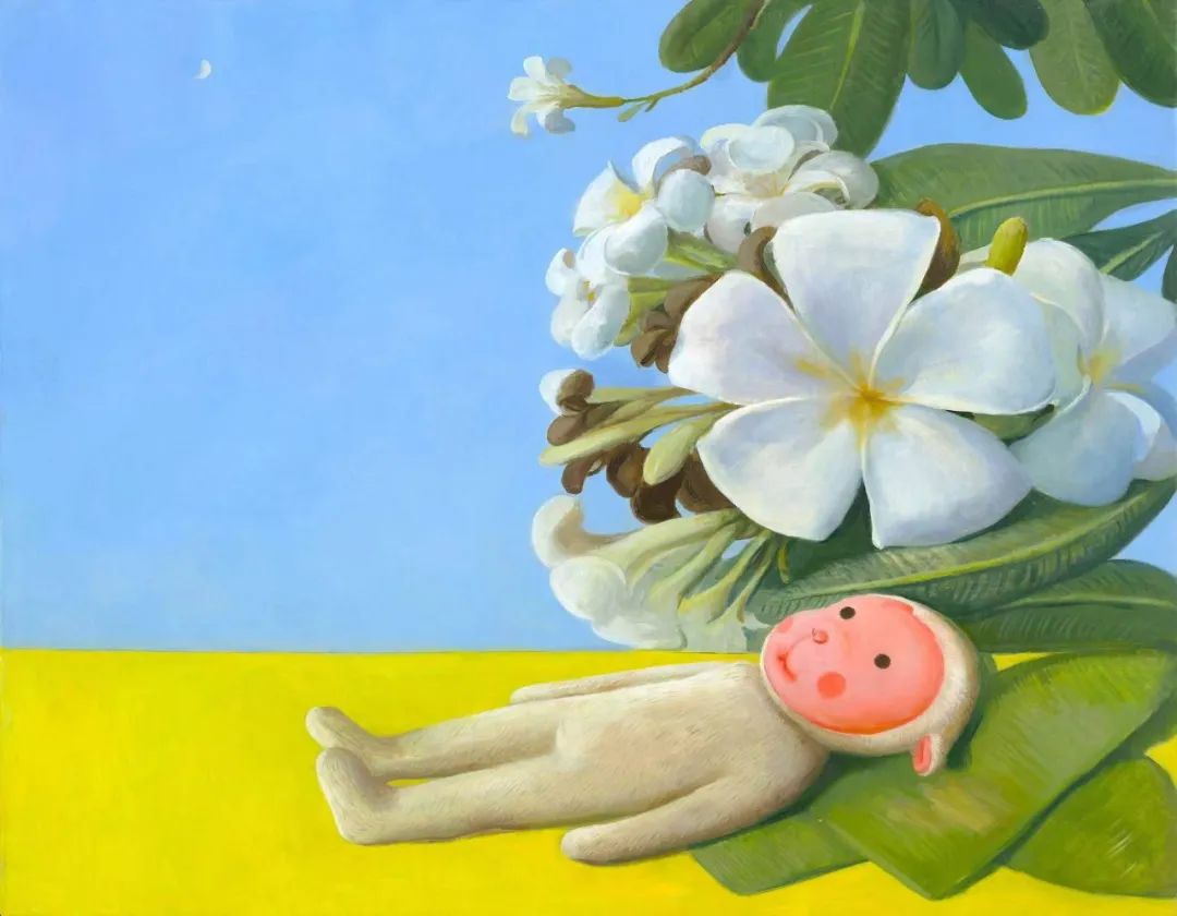 作品里明明不是新月,起名叫“新月”是因为对新生有期望,也是因为中学时姐姐送我一本泰戈尔的《新月集》,里面的人和风景有种疏朗和悠远的气质。印度与泰国纬度近似的原因吧,炎热,让人的速度慢下来,想说的话可以娓娓道来,想画的画一遍一遍重复涂抹。我的院子里有棵开花的树,每到傍晚幽幽的香。