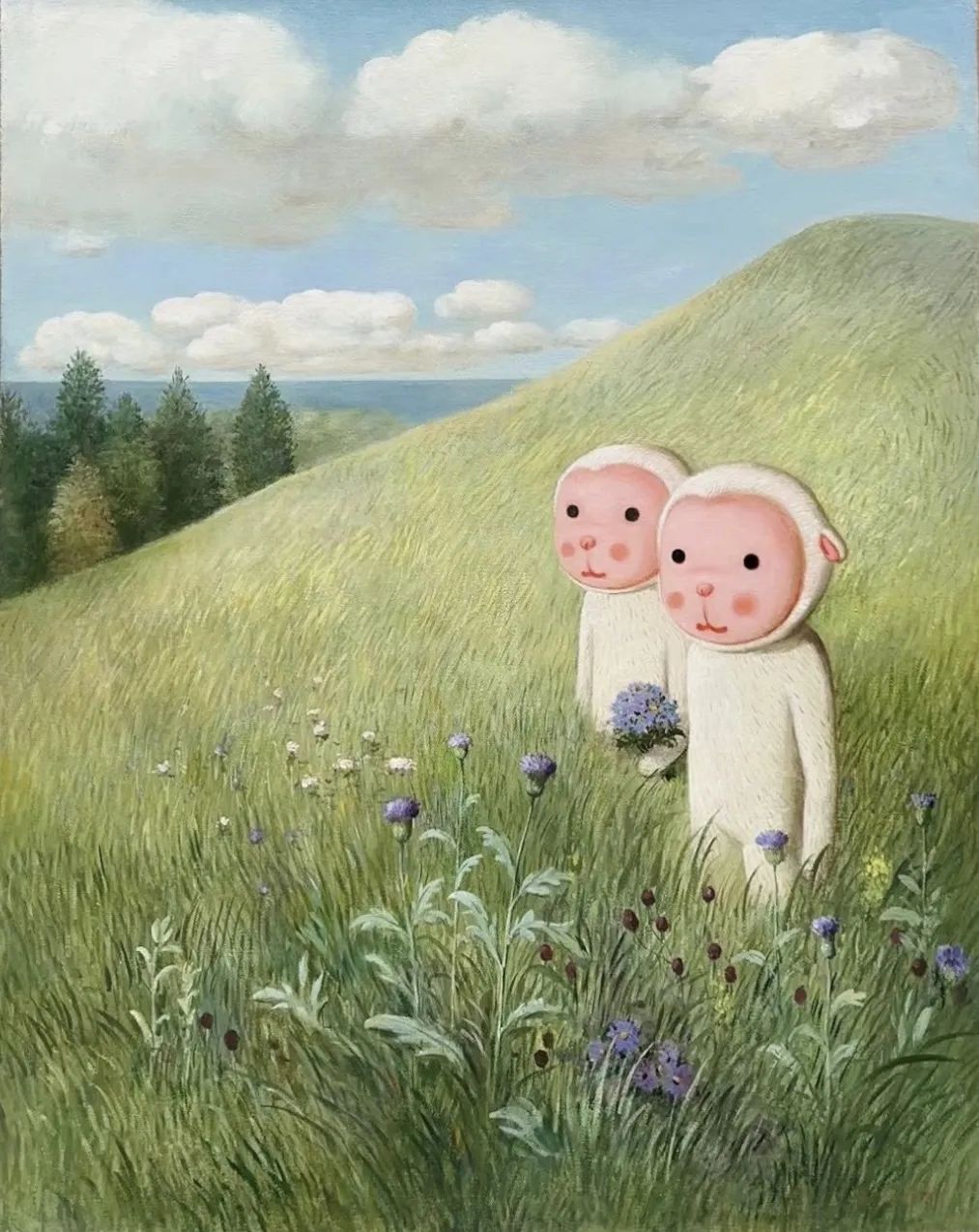 她说:“出去看看世界,感受世界,然后理解世界,做好自己。”这句话也在她本次个展作品中得到了诠释。艺术家杨媛媛用自己的眼睛、心灵感知世界,通过对自然风景的描绘,然后将这种感性融入到她的创作中,用独特的笔触和表达方式,从一只可爱的小羊出发,展现了对人性之爱的赞美,并思索生命、人性以及宇宙等本质问题,哲思与艺术创作的融合。