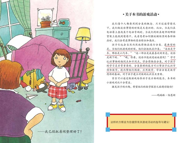 每本书都有与故事讲述的数学概念对应的亲子互动游戏,只需要简单道具就可以操作,趣味性强,不仅有助于亲子互动,还可以锻炼孩子的动手能力。