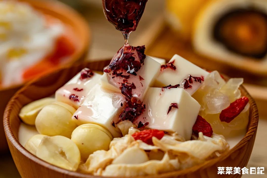 最简单是泡发后滚汤,追求功效可搭配养生食材炖煮,还可焖烧烩,做糖水甜品也不在话下。