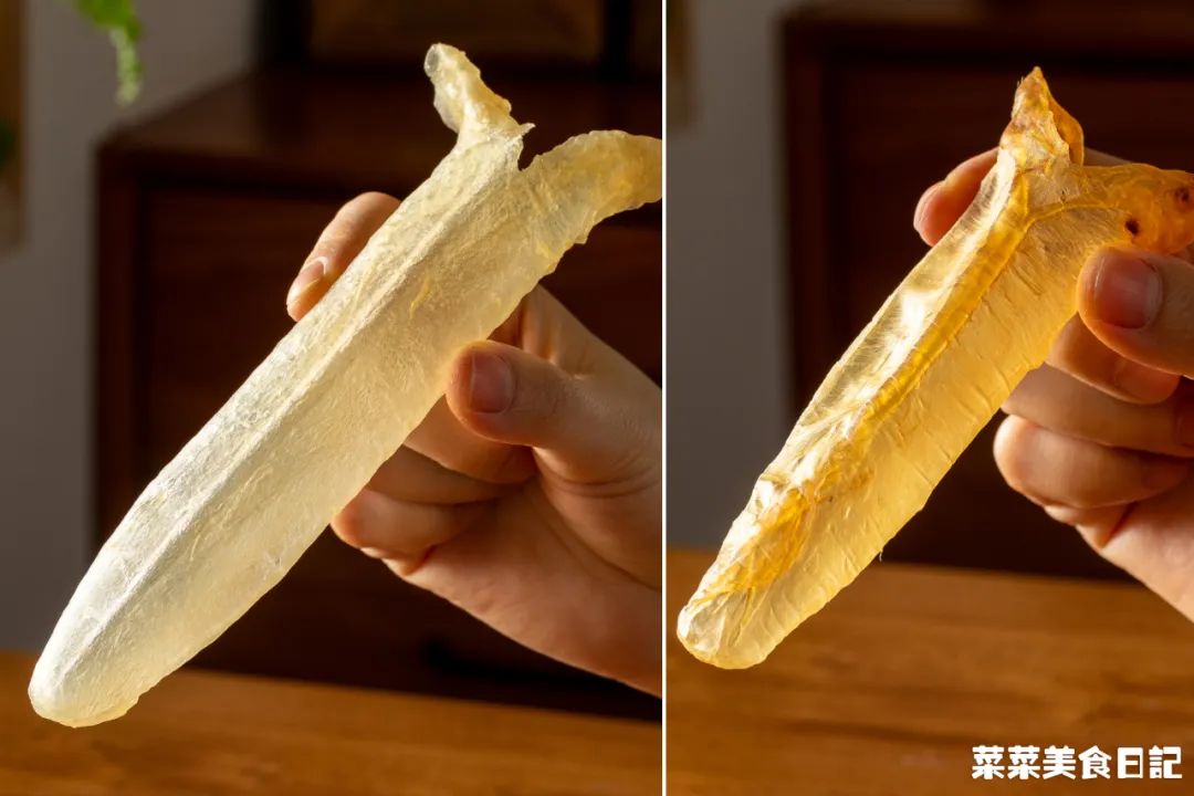 鱼鳔越大越厚实,营养就越密集,口感也越软糯胶黏。