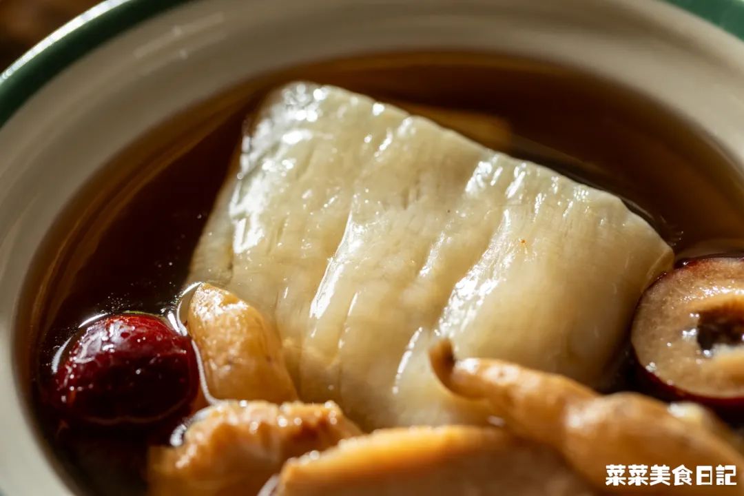 稠滑的高汤底,会将花胶的弹糯口感发挥至最大,花胶也能提升汤底的胶质感。